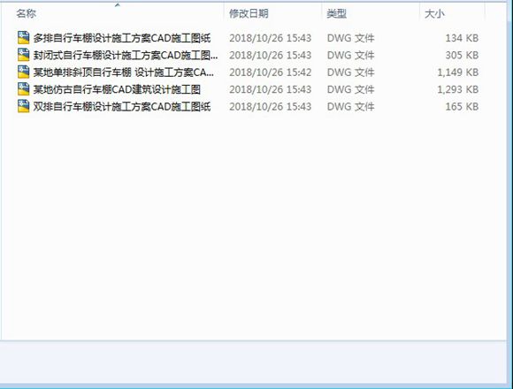 自行车棚CAD施工图纸(共5套图纸),分别为多排自行车棚设计施工方案CAD施工图纸,封闭式自行车棚设计施工方案CAD施工图纸,某地单排斜顶自行车棚设计施工方案CAD施工图纸,某地仿古自行车棚CAD建