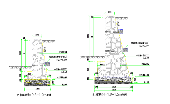 浆砌块石挡墙做法——适合不同高度挡墙需要,本图中的挡墙均为景观挡墙.共5个,可供参考。
