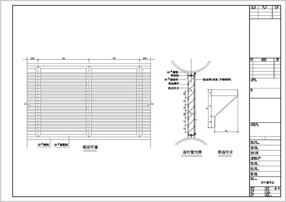 钢结构百叶窗设计节点构造CAD详图,包含铝百叶窗图,百叶窗大样图,铝百叶片图供设计师参考。图纸格式:dwg