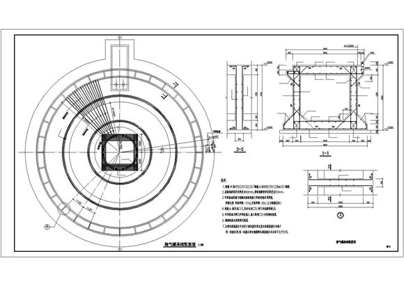 内容简介低压湿式螺旋储气罐罐基础,图纸包括:储气罐基础平面图,闸门间平面.立面.剖面图,储气罐基础配筋图,闸门间结构平面及配筋详图,施工缝连接筋做法,储气罐闸门井平面图,闸门井配筋图共计6张图。闸