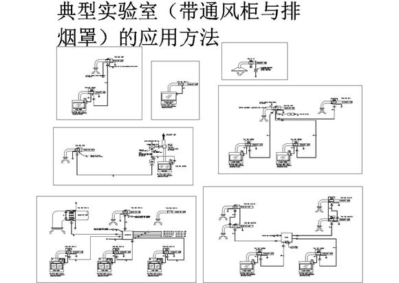 本图纸为某实验室通风柜与排烟罩详细设计cad平面施工图(标注详细);包括:单个排烟罩示意图、两个排烟罩连接示意图、四个排烟罩阀门连接示意图、六个阀门接头连接示意图等;设计规范,可供参考学习。