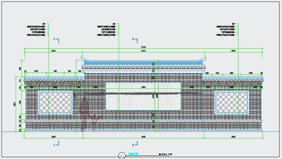 照壁景墙剖面做法详图,中式风格,立面剖面做法详图,墙身,青砖砌清水墙,顶面青瓦