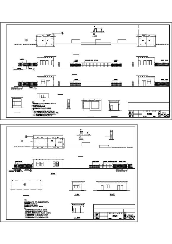 本资料为某公司大门门卫及传达室方案设计图),该图纸包括:说明建筑图立面图剖面图等,共1个CAD文件,设计精准,可供网友参考下载。