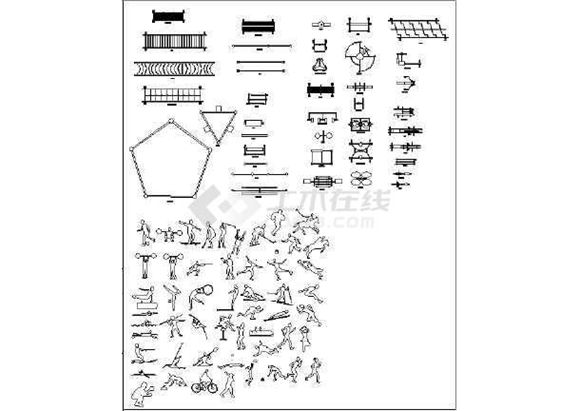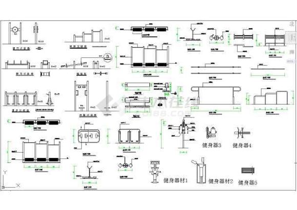 常用室外健身器材设计cad施工图库(健身cad素材)
