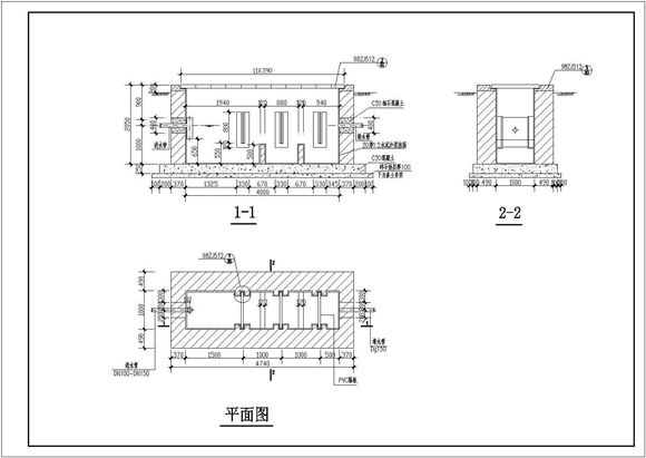 本图纸为某三级隔油池设计cad施工图(标注详细);包括:平面图、1-1剖面图、2-2剖面图等;设计规范,可供参考学习。