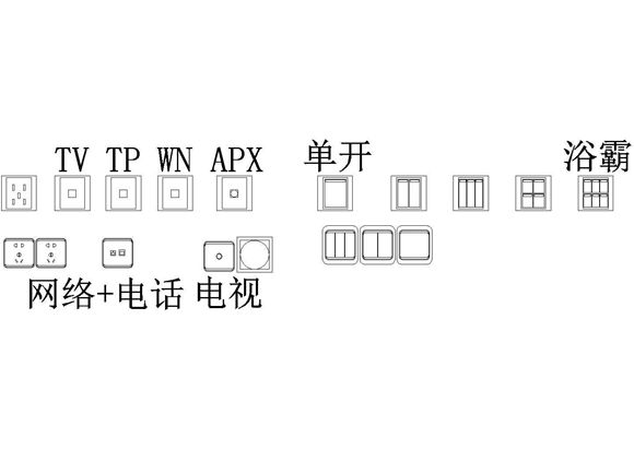 本资料为:2019最新收集的开关插座CAD图例图块(非常全面),内含包括:单开,浴霸,网络+电话,电视等,内容详实,可供设计师下载参考。