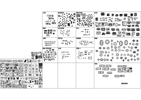 本图纸为室内装修常用cad平面图例图库附效果图(标注详细,种类齐全);包括:餐桌图例、坐便器图例、茶几图例、煤气灶图例、靠枕图例、人物图例、汽车图例、沙发图例、淋浴房图例、效果图等;设计规范,内容详实