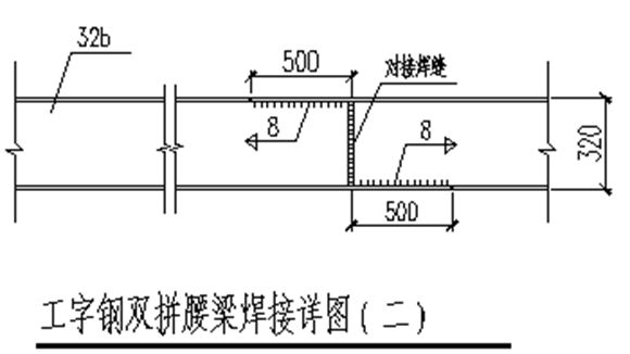 某工字钢双拼腰梁焊接施工cad图_钢双拼腰梁焊接施工