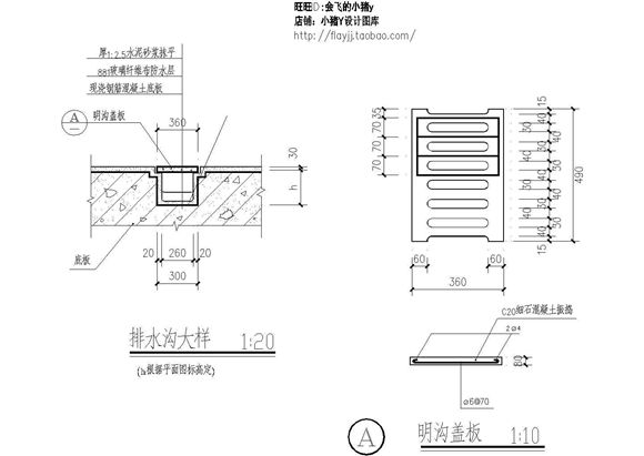 本资料为:排水沟大样明沟盖板详图设计,共1张图纸,可供设计师参考。