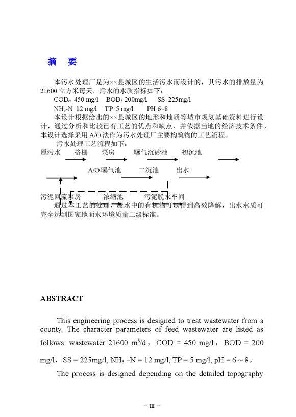 本污水处理厂是为××县城区的生活污水而设计的,其污水的排放量为21600立方米每天