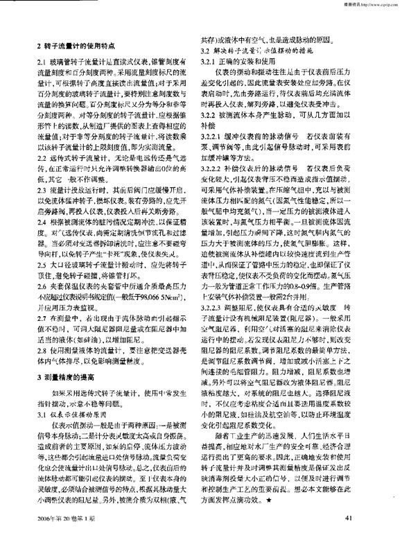 通过对转子流量计的安装注意事项、使用特点及测量精度等方面的阐述.为人们在此类设备的安装使用和运行管理方面提供有益的经验。