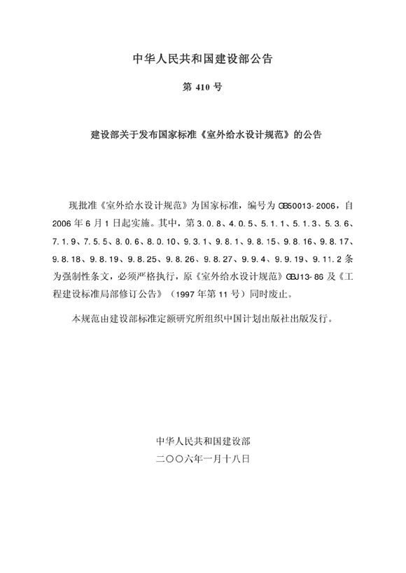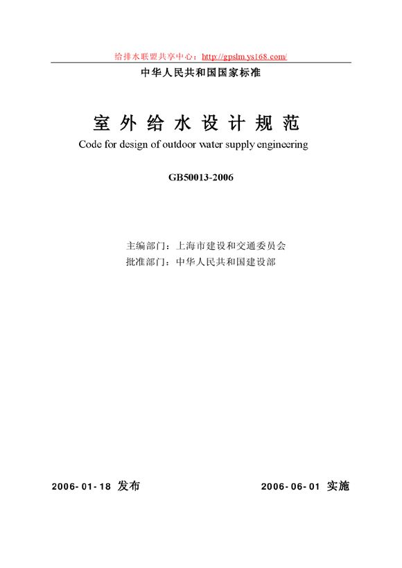 《室外给水设计规范》(GB50013-2006)正式版pdf