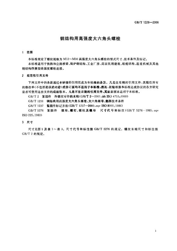 GB-T1228-2006钢结构用高强度大六角头螺栓