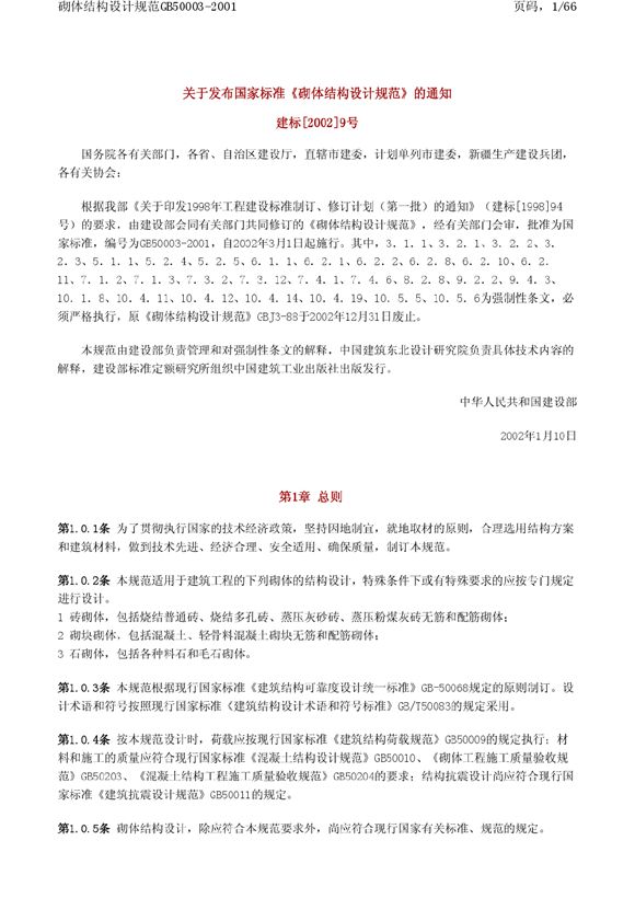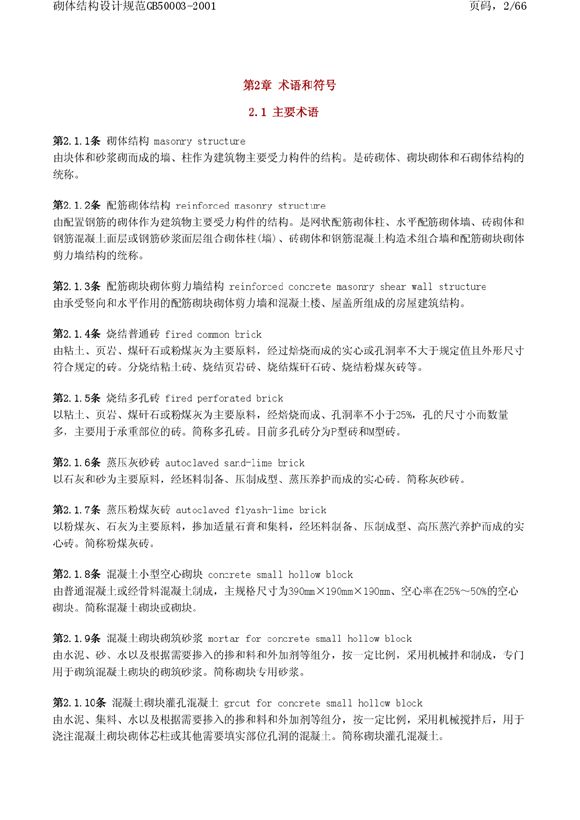 本规范适用于建筑工程的下列砌体的结构设计,特殊条件下或有特殊要求的应按专门规定进行设计。1砖砌体,包括烧结普通砖、烧结多孔砖、蒸压灰砂砖、蒸压粉煤灰砖无筋和配筋砌体;2砌块砌体,包括混凝土、