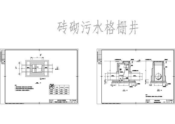 本资料为:污水格栅井大样图cad设计图,包括砖砌污水格栅井工艺设计图,砖砌污水格栅井工艺设计图二等,设计精准,可供设计师参考。
