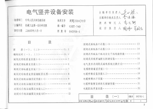 本文为电气竖井的设备安装图集,本图集主要解决电气竖井内钢管、金属线槽、电缆明敷设、电缆桥架、封闭式母线等垂直线路与水平线路布线方式和设备安装。