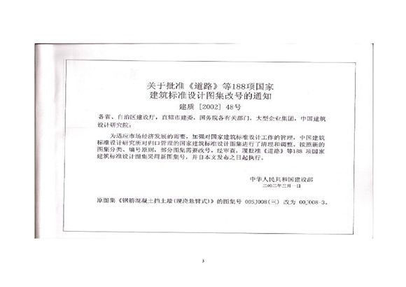 本图集适用于全国工业与民用区场地和道路工程的钢筋混凝土(悬臂式)挡土墙的修建,对地基软弱地段或石料缺乏地区尤为适宜。本图集可用于6、7度抗震设防,当用于8度时,强高不得大于4米。