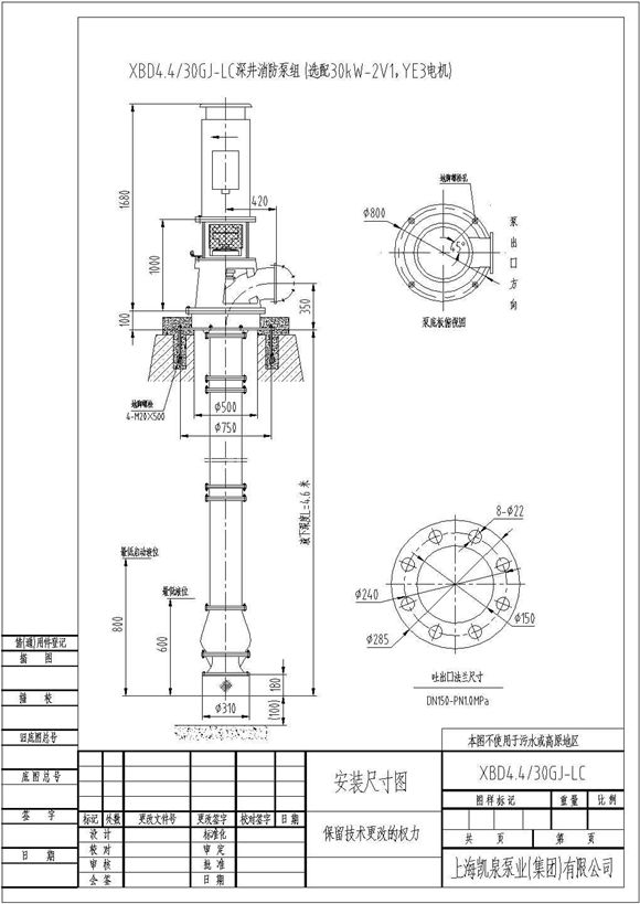 XBD4.430GJ-LC立式长轴消防泵外形尺寸图,设计详实,供下载参考。
