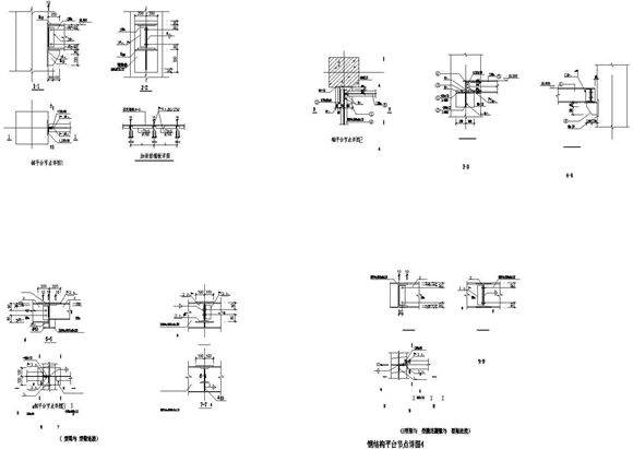 工字钢H型钢槽钢预埋件间连接cad设计节点详图