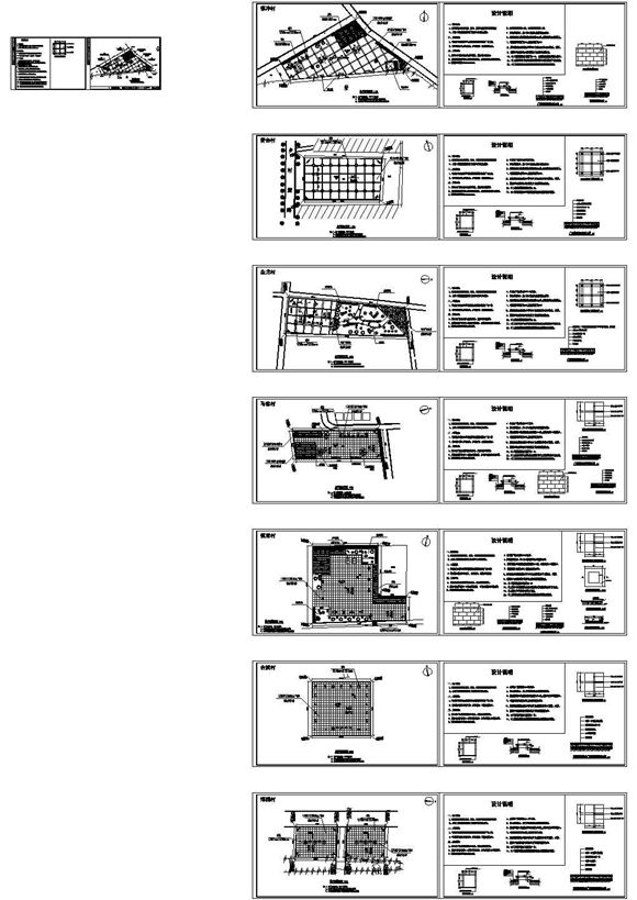 本图纸为经典9个村民社区健身小广场设计cad全套施工图纸(含设计说明);包括:设计说明、总平面布置图、树池平面做法、树池剖面做法、广场铺地地面做法大样图、青石板地面做法大样图、300x600青石板大样