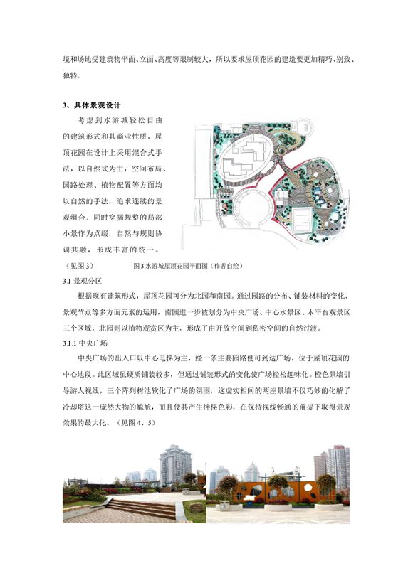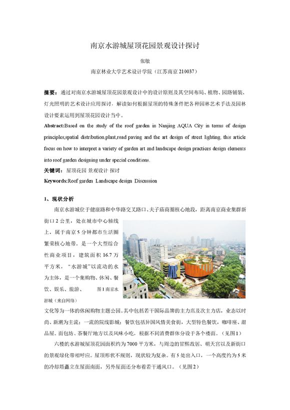 通过对南京水游城屋顶花园景观设计中的设计原则及其空间布局、植物、园路铺装、灯光照明的艺术设计应用探讨,解读如何根据屋顶的特殊条件把各种园林艺术手法及园林设计要素运用到屋顶花园设计当中。