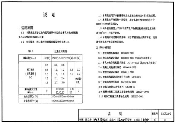 本图集适用于工业与民营建筑中P型烧结多孔砖及M型模数多孔砖砌体的门窗洞口过梁。本图集适用于非抗震设计及抗震设防烈度为6度至8度的过梁。