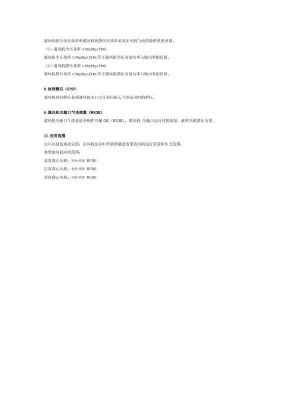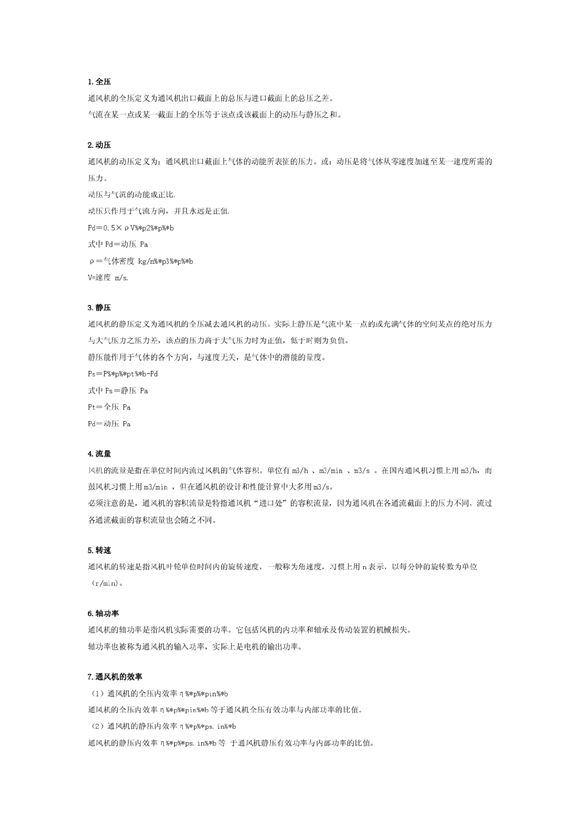 关于风机全压、静压及效率的定义