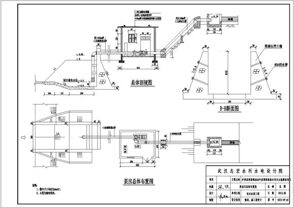 本工程为某地区完整的泵站设计参考CAD图纸,包含泵房总体布置图、总体剖视图、泵房正立面图等,图纸内容完整,表达清晰,制图严谨,欢迎设计师下载使用。