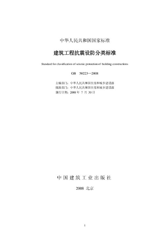 GB 50223-2008 建筑工程抗震设防分类标准 pdf版
