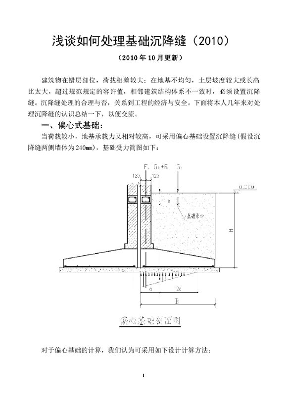 本人曾经上传过一个《如何处理基础沉降缝》的个人体会,先将原文经过修改后,另附一个实例,传给大家,供大家一起交流,基础沉降缝必须将基础断开,如何断开,能使相邻基础自由沉降,资料上介绍的实例都不是很多!