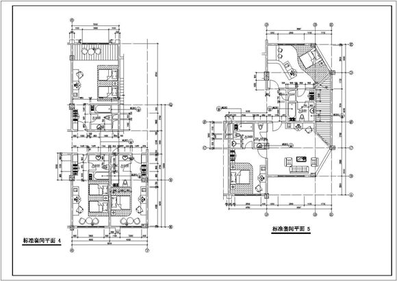 本资料为上海某四星级酒店标准层平面设计CAD图纸,其中包含:5张标准间平面图,卫生间平面图等,可供设计师采纳参考!