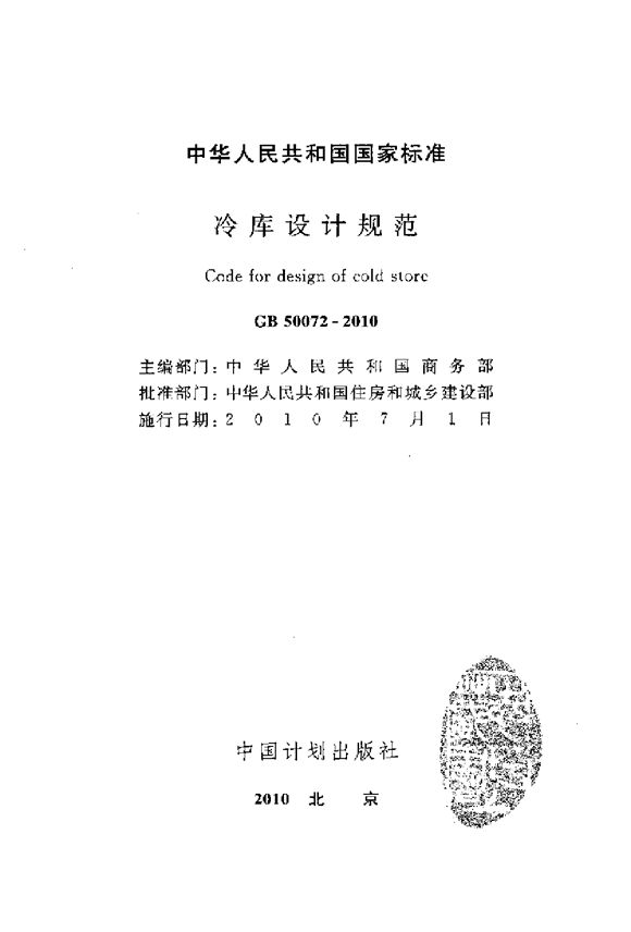 现批准《冷库设计规范》为国家标准,编号为GB50072-2010,自2010年7月1日起实施。