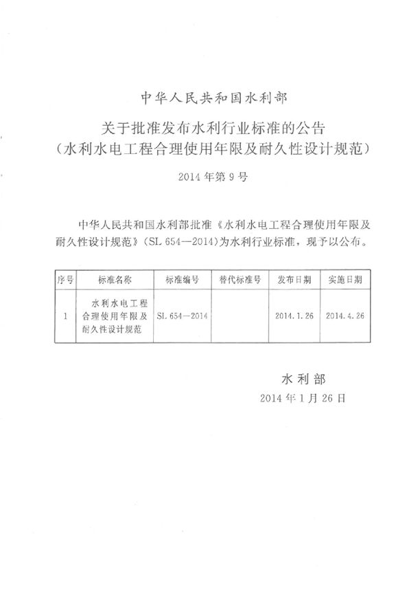 SL 654-2014 水利水电工程合理使用年限及耐久设计规范