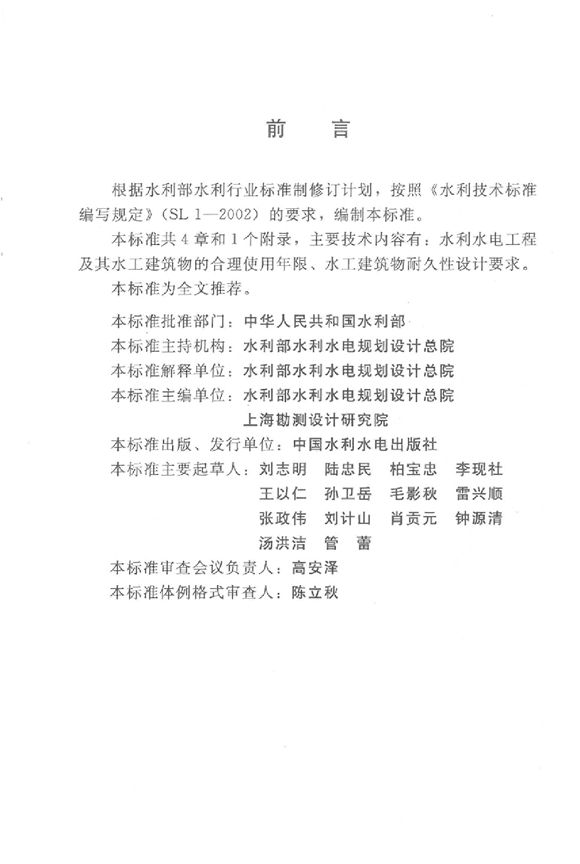 为了适应水利水电工程设计的需要,明确水利水电工程及其水工建筑物的合理使用年限,规范耐久性设计,制定本标准。