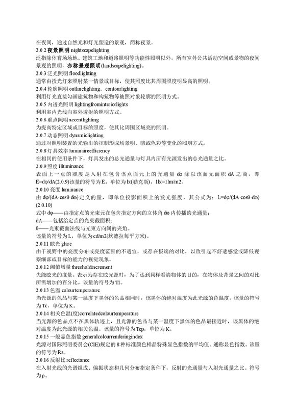 中华人民共和国行业标准JGJ/T163-2008,主要为城市夜景照明设计规范。