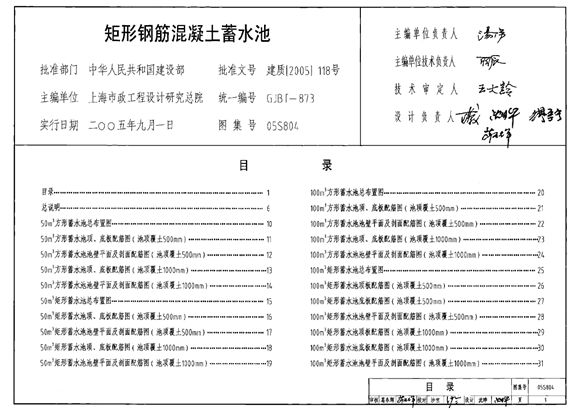 05S804(GJBT-873)矩形钢筋混凝土蓄水池图本图集