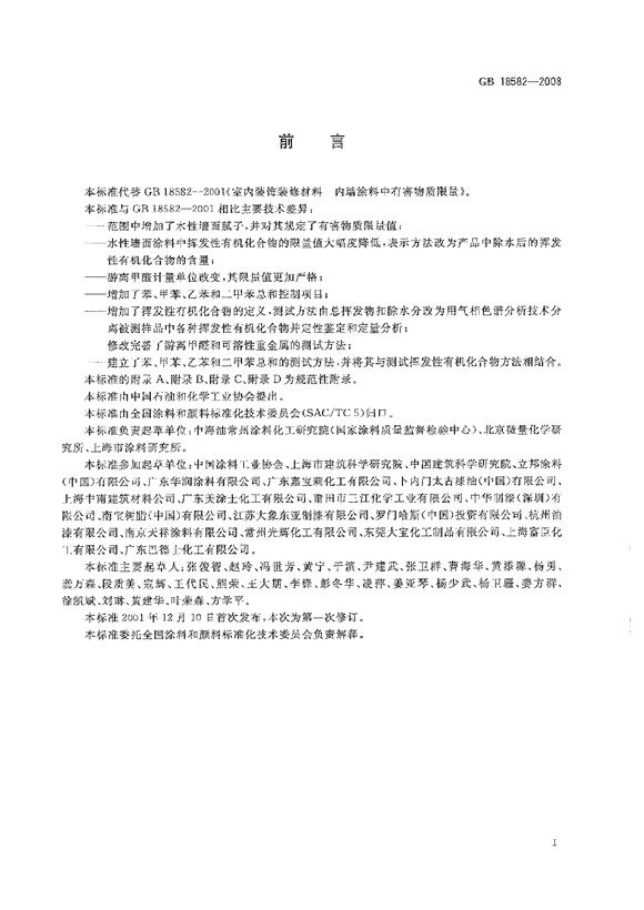 GB18582-2008室内装饰装修材料 内墙涂料中有害物质限量