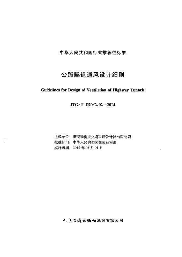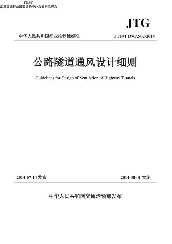 原《公路隧道通风照明设计规范》中涉及公路隧道通风的相关要求进行全面修订和扩充,现经批准以《公路隧道通风设计细则》JTGTD702-02-2014.颁布实施。