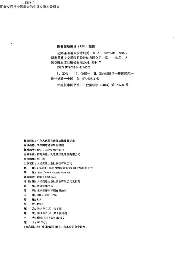 《公路隧道通风设计细则》JTGT D702-02-2014