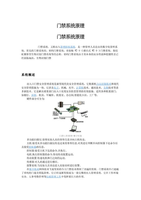 门禁系统,又称出入管理控制系统,是一种管理人员进出的数字化管理系统。常见的门禁系统有:密码门禁系统,非接触IC卡(感应式IC卡)门禁系统,指纹虹膜掌型生物识别门禁系统等的总称。