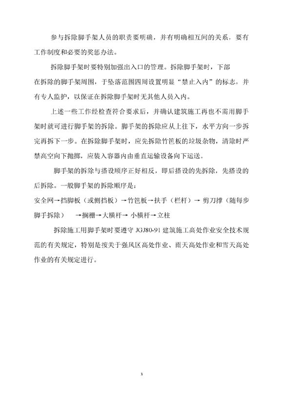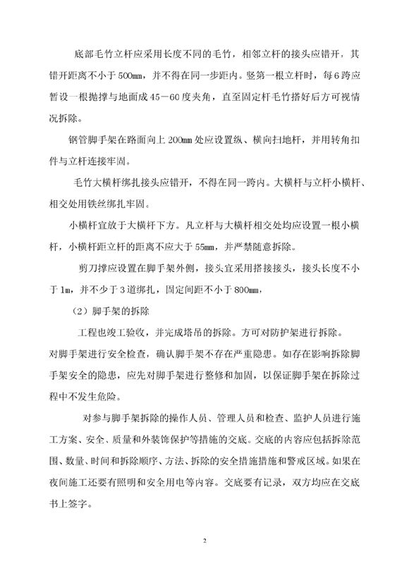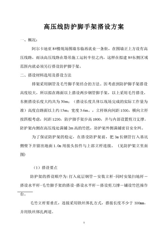 阿尔卡迪亚8#楼现场围墙东临再就业一条街,在围墙正上方设有高压线路,而该高压线路在塔吊施工运转半径之内,这样在拟建8#东侧区域范围内就必须另行搭设防护脚手架。