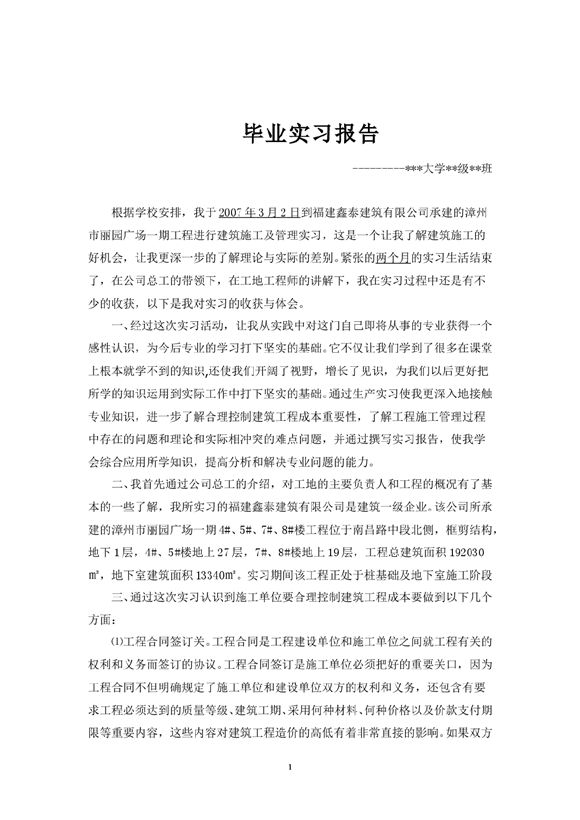 工民建专业毕业实习报告