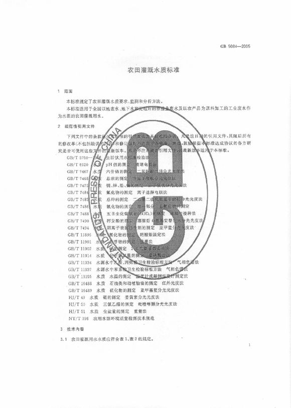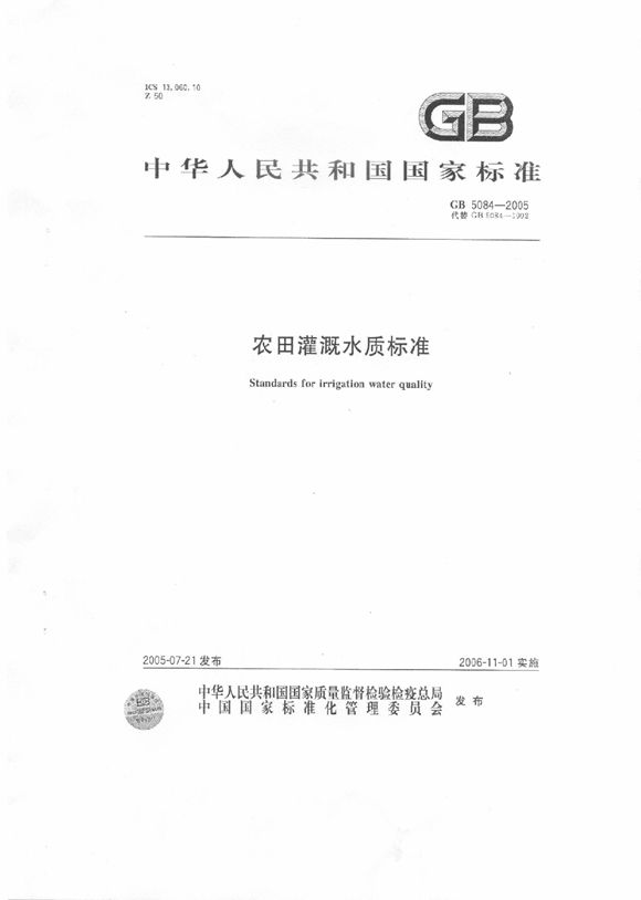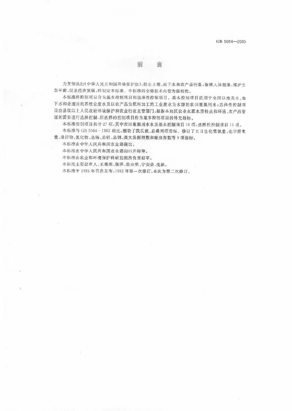 农田灌溉水质标准(GB5084-2005代替GB5084-1992)