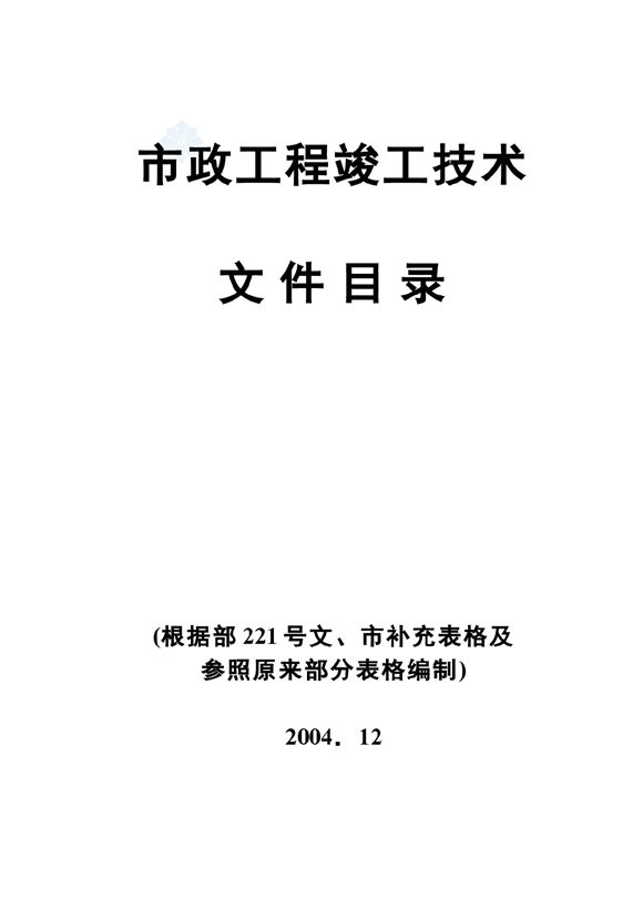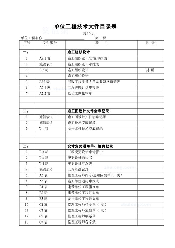 市政工程竣工技术文件目录(单位工程技术文件目录表),可供参考。