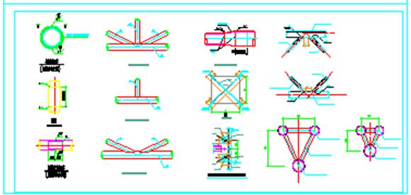 本资料为完整钢管桁架cad施工详图及节点图,其包含的内容为圆管的相配连接,纵向支撑连接定位详图,钢管接长作法示意等内容,设计详实规范,可供下载参考。