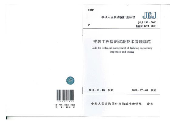 JGJ190-2010建筑工程检测试验技术管理规范.pdf,这是网上收集的文件,欢迎共同分享/学习