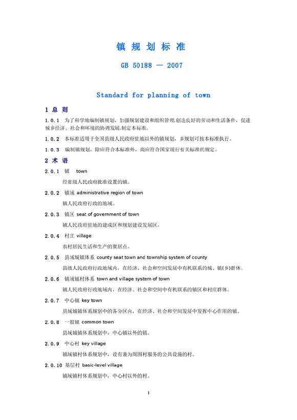 镇规划标准 GB 50188-2007