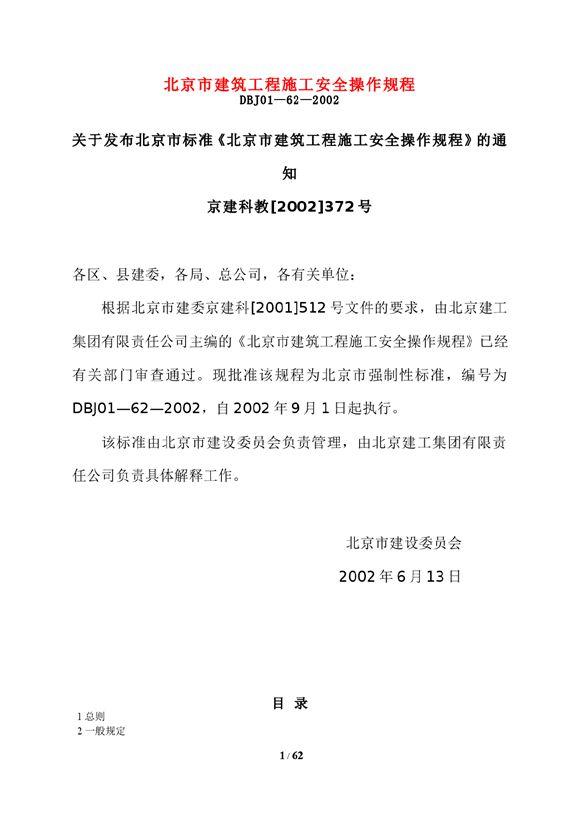 北京市建筑工程施工安全操作规程(DBJ01-62-2002)