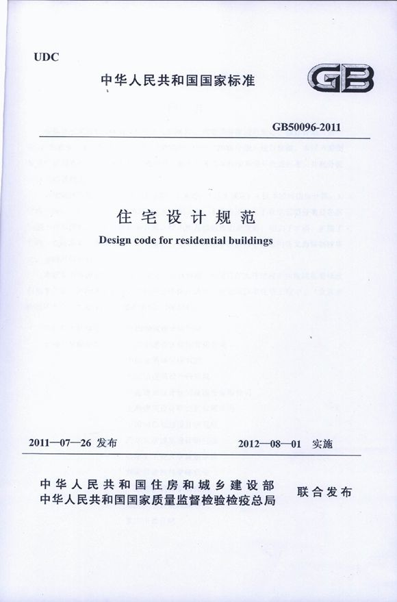 《住宅设计规范》GB50096-2011已于2012年8月1日开始实施。该规范原有三个版本:《住宅建筑设计规范》GBJ96-86;《住宅设计规范》GB50096-1999;《住宅设计规范》GB5009