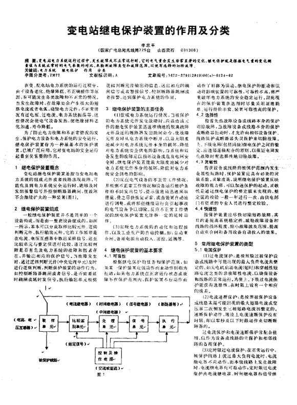 变电站电力系统运行过程中,发生故障或不正常运行时,它的电气量会发生非常显著的变化,继电保护就是根据电气量的变化测量值与系统正常时的电气参数的对比,来检测故障类型和故障范围,以便有选择的切除故障。